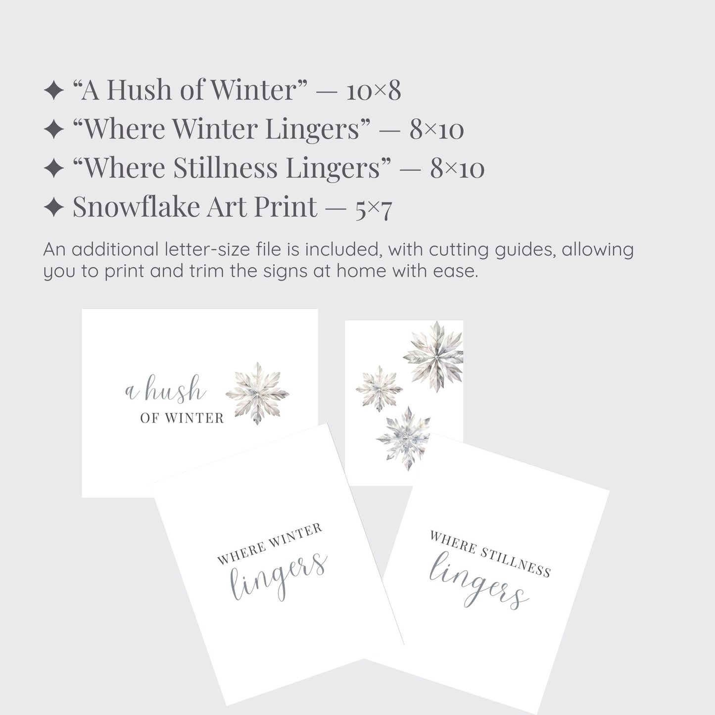 This collection pairs lovely typography with soft winter imagery, creating a calm, reflective atmosphere that carries your home from Christmas into the long, beautiful hush of winter.